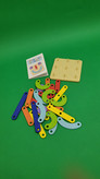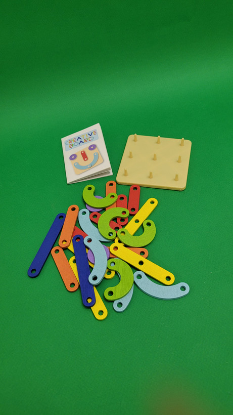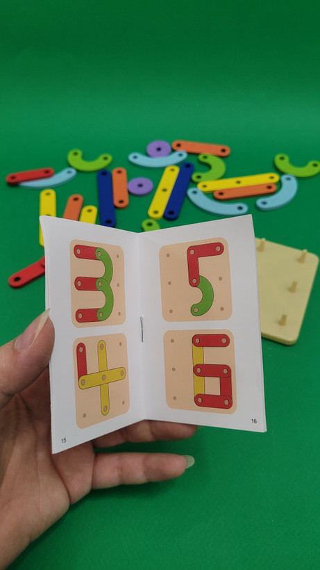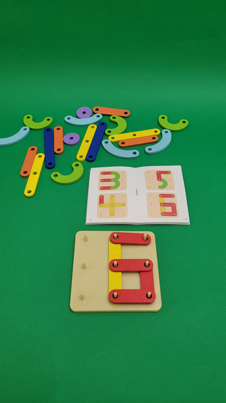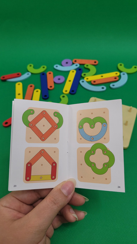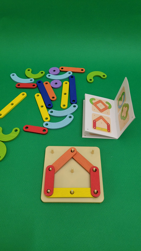 این بازی شامل یک برد مربعی با ابعاد ۱۰ در ۱۰ و ۲۴ قطعه چوبی رنگی با اشکال متفاوت و یک دفترچه شامل الگوهای مختلف هستش /برای کودکان ۳سال به بالا منابه چون قطعات ریز داره