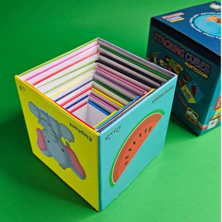 مکعب مونته سوری شامل 10 مکعبه از کوچیک به بزرگ که هر ضلع مکعب ی موضوعی و آموزش داده .کودک علاوه بر اینکه مفهوم اندازه کوچک و بزرگ و یاد میگیره ،رنگ ها حیوانات خوراکی و میوه هارو هم یاد میگیره.ابن مکعب ها برای کودکان 2 سال ب بالا مناسبه .با این اسباب بازی کودک میتونه مفاهیم ساده و ببینه و خیلی زود یاد بگیره.جنس این مکعب ها مقوای ضخیمه و براحتی خراب نمیشه.ولی قطعا اگه تحت فشار زیاد باشه آسیب میبینه