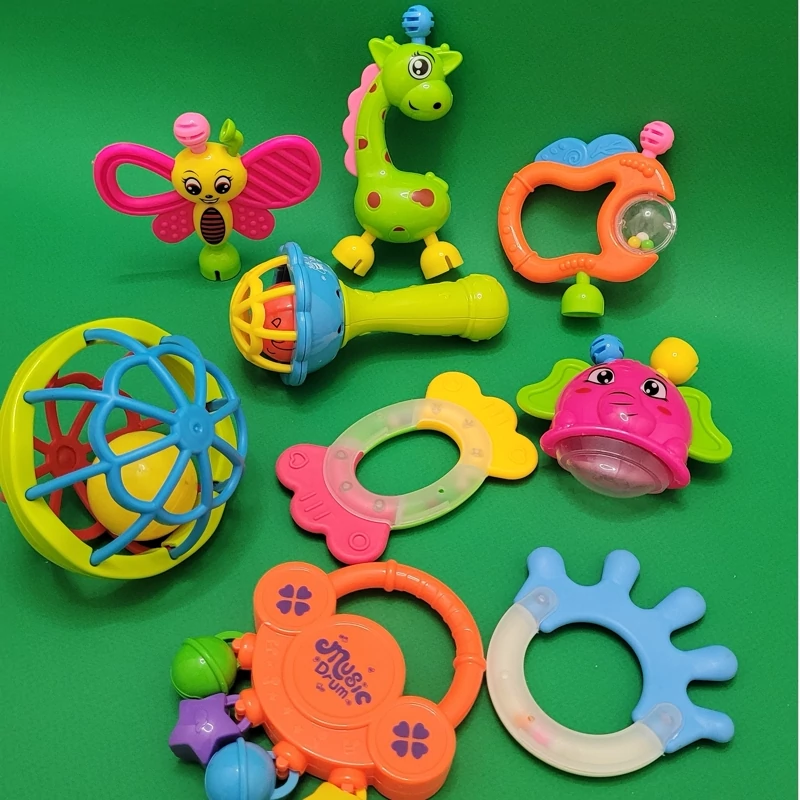 پک جغجغه نوزادی محصول وارداتی و باکیفیت جنس قطعات ترکیبی از پلاستیک و سیلیکون هست شامل 9 جغجغه که 6 تاشون دندونگیر دارن صدا،طرح و قابلیت هرکدوم متفاوته پس حتما ویدیو رو ببینید🌸